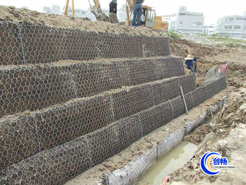 英國在16世紀時,首次出現(xiàn)鉛絲石籠網(wǎng)的形式是裝滿泥土的柳條筐,用于軍事重地的炮兵掩護體。17世紀日本是最早把鉛絲石籠這種形式的建筑運用到防洪除險工程中去的。18世紀初,意大利開始采用袋狀的鉛絲石籠,用于修補和加固河堤。