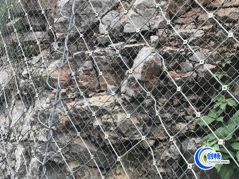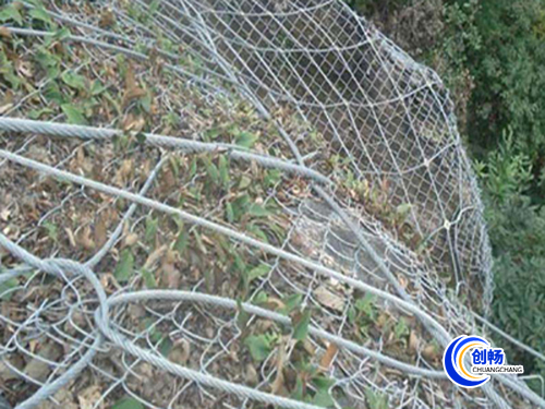 鋼絲繩防護(hù)網(wǎng)是以高強(qiáng) 度鋼絲繩柔性網(wǎng)(菱形鋼絲繩網(wǎng)、環(huán)形網(wǎng)、高強(qiáng)度鋼絲格 柵)作為主要構(gòu)成部分.并輔以錨桿、支撐繩等配件構(gòu)成整個(gè)系統(tǒng)。以覆蓋、緊固坡面的方式來防治坡面巖石崩 塌、滾落、爆破飛石等危害。